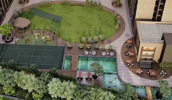 50+ amenities: sports courts, yoga lounge, children’s play area.